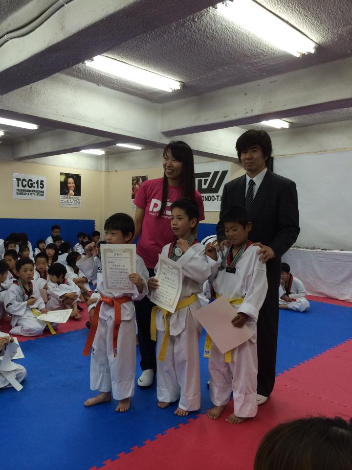 JUGEMテーマ:テコンドー 「キッズの部」 金メダル 野本海翔君 大矢元気君 西田茉央ちゃん 銀メダル 木本俊平君 川村弘毅君 銅メダル 名越大地君 「大人の部」 金メダル 中山絵美さん 銀メダル 柴田佳祐さん おめでとうございます!