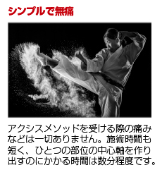 JUGEMテーマ:アクシスメソッド おはようございます 今朝はまだパラパラと雨が降ってましたが何とか上がりそう な雰囲気 今日も楽しんで頑張って参りたいと思います 早速今日もチラシの中からの抜粋です アクシスメソッドの特徴の中に 「シンプルで無痛」と「一切の副作用なし)があります まず、アクシスメソッドを受ける際には一切の痛み等は ありません。鍼や矯正のような外部からの圧力はまったく ないからです。頭部に軽く触...