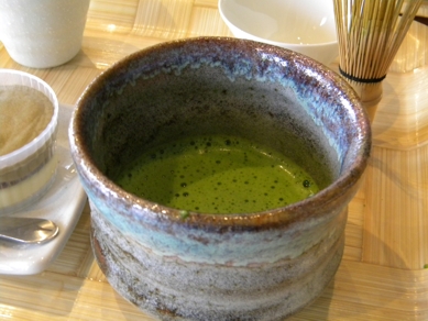 近所も近所、信号を渡った角にある、 宇治園さんのカフェ。 こんな近いのに、初めて行った。 カフェのメニューのひとつ、 「体験型 抹茶 プラス ほうじ茶のフロマージュ」で700円。 体験型は、 自分でお茶を点てる。 何年ではきかない、何十年ぶりに茶筅をシャカシャカさせた。 良いお茶らしく、とーっても美味しい。 ほうじ茶のフロマージュ。 抹茶のフロマージュにすれば良かった。ちょっと...