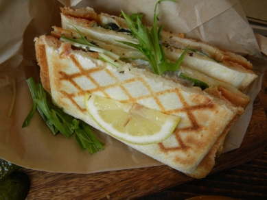 こちらも工房から徒歩圏内のお店。 徒歩・・・・・10分くらい。 サンドイッチメニューのサバサンド。 しめサバが入っている。 意外に美味しかった。 珈琲は森彦のコーヒー。 ご近所カフェめぐり、 宇治園からの「フリーキーワードローブコーヒー」。 サッポロファクトーリーの12号線の駐車場入り口に向かって右側にあるお店。 こちらもずっと気になっていて、 やっと行ってきた。 サンドイッチに小さい...