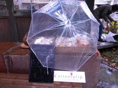 そういえば、 10月11日(日)に出店したイベント、 ハルテラスCafeの「秋の収穫祭」は雨でした。 連休の前日も、翌日も晴れたのにイベント当日だけが雨! そんな強運の持ち主は誰でしょうね(*^_^*) 雨天決行のイベントで、 大きなパラソルを上においてくれましたが、結局風やらなんやらで 使いものにならず、ビニール傘でしのぐ、 商品が濡れないようになるべく小さくまとめて、 という対応策は、お客さまも少なかったしなんとかなんとかこの感じで11時〜16時までをやりきりました。 ハル...