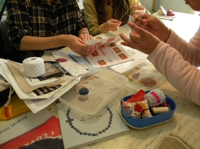 コットンチューリップ・ココカラキレイのテシゴトの会 「タティングレース講習会」 報告 10月25日(日)11時〜16時 会費 2500円 参加 講師1名・受講2名(2名欠席) 受講された2名はいずれも、 事前に市販の本とシャトル・レースをお持ちで独学ではできなかった、 という方たち。 さっそく、 講師のおはり子先生による、丁寧な指導に、 真剣。 先生の見本。 アクセサリーに仕立てるためのパーツもたくさん持ってきてくれました ・・・ ...