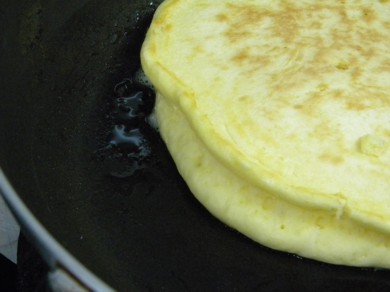 わーい、ホットケーキ!・・・・たぶん。 薄力粉、お玉ですくってベーキングパウダー入れて 卵、割り入れて、お砂糖もお玉ですくって、 混ぜたら固いんで、牛乳回し入れて、 ぐるぐる混ぜて フライパンでゆっくり焼いた。 たぶん、ホットケーキ。 キャラメルソースどぼどぼかける。 お菓子屋の昼ごはんなんてこんなもんさ(>_