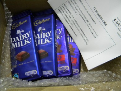 わっほい!当りました。 キャドバリーのデイリーミルクと、フルーツ&ナッツ。 これはいつものレシピブログさんの宿題付き。 「キャドバリーのチョコで手作りに挑戦!バレンタインスイーツレシピ」 まずどんなお味か、食べてみないとね(^.^) 食べて終わってしまわないよう、 このチョコレートで作るバレンタインスーツ、考えながら、ね。 さてさて、 でも まずは食べてみないとね、・・・・はい!ちゃんと間に合うようにやりますよー。 JUGEMテーマ:札幌グルメ!!