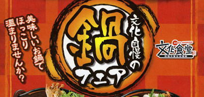 今日は。 札幌市で大規模な飲食店サービスを展開し約30店の店舗、事業所を持つ株式会社 APRグループの一員すすきの「文化食堂」のホームページが新しくなったそうです。 この度、文化食堂のホームページが新しくなりました。 こちらです。 文化食堂は夜6時から翌朝8時まで営業している居酒屋ダイニングです。 ただ今、鍋フェア開催中との事です。 JUGEMテーマ:札幌グルメ!! 豊富なメニューとたくさんの種類のお酒や飲み物があり、深夜0時から6時までの飲み放題が1680円と大変リーズナブルになって...