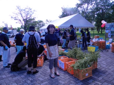 さっぽろ農学校専修コース収穫祭、今日なので、行ってきました。 ★日時 9月6日(土)9時〜15時 ☆場所 サッポロさとらんど さとらんどセンター前広場 写っているのは、 この農学校でお勉強中の、藤井純子さん。 彼女はポタジェアドバイザーで、野菜ソムリエの資格をお持ち。 お友達です。 ポタジェっていうのは、家庭菜園、っていう意味です。 ゴーヤ、買ってきました。好きなので。100円でした。 それから春菊とか。とーっても軟かな葉っぱ♪うれしい。 さとらんどのナナカマドの実が赤い。 もう秋...