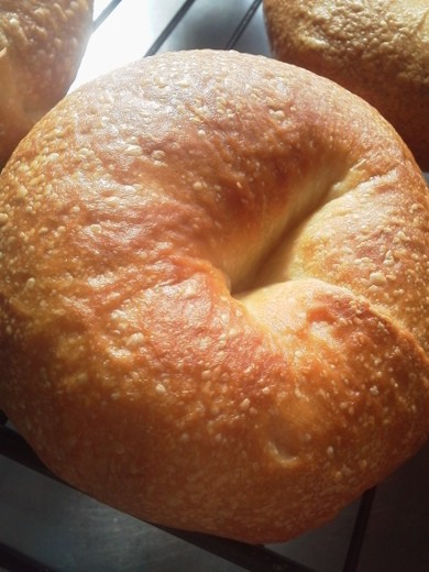 ぷっくりん 外カリっ 中モチッ クリームチーズとスモークサーモンと玉ねぎスライス 挟んで食べて、とか言うけれど、 わたしもそうするものと思ってたけれど、 いんや、 このままが美味しい、と思うさ。 クリームチーズとスモークサーモンと玉ねぎスライスは 別のお皿に、アボカドディップかなんかと盛り合わせて お好きにどうぞ、って出すのがよいかと思ったり。 で、他のパンに挟んだり、挟まなかったり。 うちのベーグルさんは、小さめ。 いろいろ食べたい女子サイズ。 1個90円。 ...