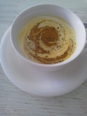 ちゃっちゃっちゃちゃ、かぼちゃのスープ♪ ママが作ったじま〜んのスープ、 シンデレラの馬車かぼちゃ、かぼちゃ♪ 歌いだしたくなるような、 大きなカボチャをもらいました、半分。 雪化粧、という品種の、皮が白緑のカボチャです。 大きくて、さすがに半分に切るのが大変だったみたいで、 「わたしも、せつ子も、切れなくてさ」とは、 持ってきてくれた近所のおばちゃん友達80歳。せつ子さんは彼女の妹さん。 切れなかった、というのがよく解る。 皮のあちこちに、切り傷が(@_@;) そうだよね〜、ほんとカ...