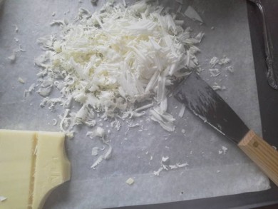 チョコレートコポー カンナ屑、または鰹節のように、 チョコレートを削ったもの。 洋菓子やアイスクリームのトッピングに使われます。 「チョコレートコポー」として売ってます。 たいていは、自分で作ります。 削り方でいろんな形ができますから。 ホワイトチョコのコポーと 黒いチョコレートのコポーでは 削り方が違います。 で、黒い方はクルクル棒状に。白いのはさらさらと紙吹雪のように。 焼き菓子屋なので、通常はコポーなんて使わないんだけど、 クリスマスだし、クリスマス用のケーキに...