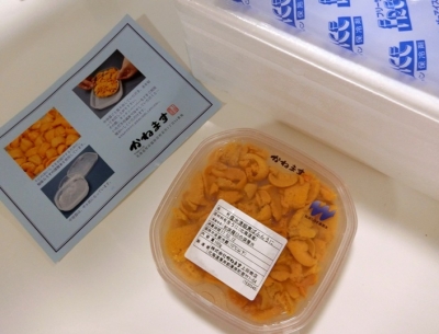 カタログギフトで選んだ品物が届きました♪ タカシマヤ ユアチョイスギフト 『北海道 蝦夷ばふんうに 100g』 かねます 上田商店(北海道厚岸郡厚岸町若竹1-54) という会社のウニでした。 [原材料名] 生うに(北海道産)、知床らうすの深層水 ヤマトの冷蔵便で届きました! 発泡スチロールの箱と大きな保冷剤で、しっかり保冷されています。 カタログには「賞味期限 5日」とありましたが、記...