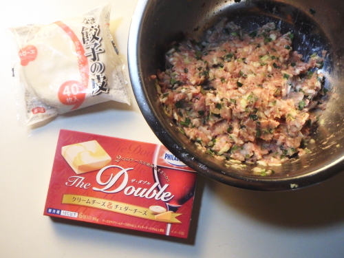 JUGEMテーマ:お家ごはん 「肉食系」 さて、 今回はどんなものを食らうのか? 今回はチーズ入り餃子。 うまく包めるかな? チーズはクリームチーズを使用。 チェダーチーズ入りで、おいしそうなので、 こいつに決定! 包んだ姿、焼いた写真は、サイトまで。 http://gorakku.moo.jp/niku/ 「肉食系」※肉料理に特化した飯テロを目指してます! 完成品を覗きに来てね!