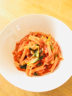 JUGEMテーマ:おうちごはん JUGEMテーマ:お家ごはん 大きめの深フライパンに、材料をぜーんぶ入れて煮込むだけのトマトパスタ♪ 楽チンで美味しくできるのでハマってます(≧ω≦) 今回は、ペンネ♪ ◎使ったもの 早ゆでペンネ・カットトマト缶・ベーコン・小松菜・しょうが・ニンニク・コンソメ・お醤油・黒胡椒