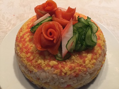 JUGEMテーマ:お家ごはん 炒り卵と胡瓜は、前の晩に作っておけば時短になります。 炒り卵は、泡立て器で作ると早くキレイに作れます。(フライパンに傷をつけない様に気をつけて下さい) 飾り付けを、お子様とやっても楽しいと思います。 型の中で直接卵とおぼろを混ぜれば仕上がりも美しく時短になります。 1.材料 (3〜4人分) 寿司飯 3〜4合 炒り卵 (砂糖大3、塩ひとつまみを入れ油で炒ったもの) おぼろ 30〜40g 胡瓜 (塩水につけてかたく絞ったもの) 市販の散らし寿司の素1袋 シーチキン小 2...
