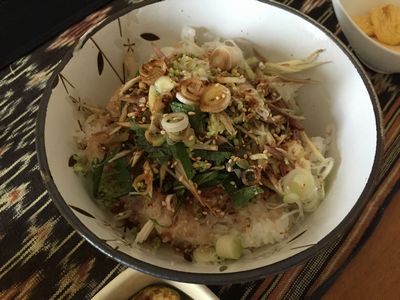 前略 ここ数日なぜか 加齢臭のすごい人と 隣になることが多い・・・ みょうがを沢山いただきまして 豆腐に乗っけてみたり、 おそばの薬味にしてみたりして 食べてたのですが なくならないので 丼にしてみました。 以前 「孤独なグルメ」でもやってた 河津のワサビ丼。 これをヒントに。 ごまをまぶしたご飯に おかかをのせて その上にみょうが、青シソ、ねぎ しょうがを少し そしてワサビ。 普段は脇役の薬味をたっぷり混ぜた 『薬味丼』です。 醤油をかけて かき込みました。 が...