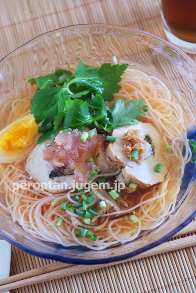 札幌は、快晴♪何だか、スキッと晴れたのは久しぶりかも〜そんなお天気のお昼は、コレ〜☆冷たいそうめんに鶏チャーシュー(夏バージョン)いただき物のそうめん、あわいピンク色です梅のお料理にぴったり!…と思ったけど、写真じゃ分らないですね ぷぷ鶏チャーシューは、ひとつ前の記事★リンク梅ジュレをのせていただきますダシを作って冷やしておきましたよ今回は、「味の兵四郎」さんのアゴだしと干し椎茸ガラスの器にどーんと麺をのっけて冷やしたダシをたっぷり〜鶏チャーシュー、脂がほとんどないので冷やし...