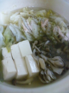 JUGEMテーマ:お家ごはん 今日はお昼ごはんとミスド食べすぎて 全然お腹が空かない。 お腹が空かないと夕食を作るのがしんどい。 それでも・・・夕食準備。 簡単にミルフィーユ鍋。 豚バラではなく鶏のむね肉を使用。 白菜1/4 鶏のむね肉 半分 お鍋全部ミルフィーユ状態にするには お鍋が大きすぎて・・・ 半分だけ、ミルフィーユ状態に。 後はおとうふ、きのこ、ねぎ。 たれはゆずぽんでいただきます。 豚バラはおいしいが 鶏のむね肉もさっぱりしていておいしい。 ...