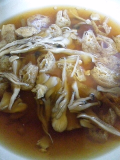 JUGEMテーマ:お家ごはん 昨日のミルフィーユ鍋の残り物のおつゆに まいたけ・油揚げ・めんつゆをプラスして おそばのそばつゆに変身。 今日の夕ご飯はこのそばつゆを使ったおそばと和風チャーハン。 ごはんも残っているので 今日は残り物おかたづけごはんです。