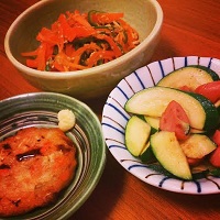 今日のおかず。 ・人参、ピーマン、ツナの生姜きんぴら ・野菜さつま揚げ ・ズッキーニとウィンナーのバターソテー ・サツマイモ、リンゴ、レーズンの甘煮 メインは鶏むねの唐揚げだったんだけど、 写真忘れました。 あと、おからケーキがなくなったので、 次のおやつを作ったんだけどね。 晩ごはんにも食べた、さつまいもとリンゴの甘煮。 うまーー。簡単ーー。あまーーい。 とまんないから、これもすぐなくなりそう。 この冬、さつまいも食べ過ぎだな。 自然でやさしい甘味がいいよね。 ...