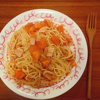 ランチはパスタ〜。 何度も作ってるトマトパスタ。 ベーコンなかったからハムで。 一応、ハムとかベーコン、ウィンナーを使う時は、 脂と添加物をちょっとでも落とす為に 1分くらい茹でてから使ってます。 湯を見たら結構濁って脂浮いててびっくりするよー。。 そー、 里帰りしてからさ、 母親がご飯を用意してくれるわけじゃん。 今は自分で結構色々気をつけて、 カロリー下げるようにひと手間かけたり、 添加物多いものは食べない、とか 調味料選びとか食品の陰陽とか考えたりして ...
