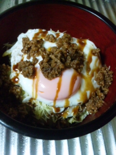 JUGEMテーマ:お家ごはん ソースそぼろ丼 ひき肉をソースで炒めた ソースそぼろを ごはん ↓ キャベツ ↓ 目玉焼き ↓ ソースそぼろ の順番に盛り付け 最後にソースをたらり! 安価でおいしい丼です。 まだ、ソースそぼろが残って 明日はお好み焼きです。 (画像がいまいち) ソースそぼろ丼 栗原はるみさんのレシピです。