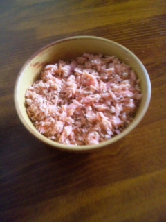 JUGEMテーマ:お家ごはん まとめて焼いた鮭。 食べきれず、残ってしまった。 どうしようか、迷った末にふりかけに・・・。 残り物の焼き鮭を 軽く身をほぐして すり鉢ですりすり。 身がほぐれたら、白ごまを入れて 混ぜ合わせて完成。 残った鮭は時間が立つと 生臭くなるのだが、白ごまで それが消える。