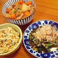 今日の晩ごはん。 ・炒り豆腐 ・小松菜のからし和え ・肉じゃが ・ブリのお刺身(夫のみ) 炒り豆腐大好き〜。 具は、玉ねぎ・人参・椎茸、 小松菜・木綿豆腐・卵・鶏ひき肉です。 栄養満点。 箸が止まらない…。 新じゃがで作った肉じゃがも、 4,5人前くらいあったのに、 2人で完食…! やー よく食べました。