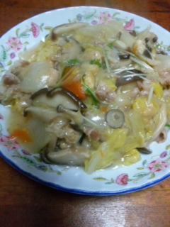 JUGEMテーマ:お家ごはん 困った時のウェィバァー 頼み 今日は何を作ろうか? 迷った時、 冷蔵庫に白菜、豚肉。しいたけ、にんじん等が あれば・・・困った時のウェィバァー 頼みで 中華風あんかけを作ります。 お昼はあんかけ焼きそば まだまだ、中華風あんかけがいっぱいあるので 夕食は中華丼にします。 困った時のウェィバァー 頼み・・・頼りにしています。