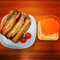 サンドイッチが無性に食べたくなった。 アボカドとソーセージステーキのサンドイッチ。 パンは玄米パン。 なるべく、全粒粉か玄米のパンを買うようにしてる。 バターやマーガリンは塗らずにオリーブオイルを塗り塗り。 ジュースは、有機人参とりんご。 近所にちょっと高めのスーパーがあるので、 時々買いに行く。 でも毎回は無理。。 セレブになりたい。