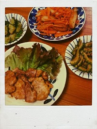 昨日の晩ごはん。 ・きゅうりの和え物 ・ゴーヤのきんぴら ・人参とさつま揚げのきんぴら ・豚ヒレ肉のカレー粉焼き ネーミングが難しいなぁ。 きゅうりは居酒屋とかで出てきそうな感じです。 あと、きんぴらが2つ。。 ゴーヤは常備菜なんで。 最近は自分でつけた漬物を食べ続けてます。 量が多すぎて…。 あと、最近は麹の甘酒にハマってる! 美味しいし栄養たっぷり。 酒粕じゃないから、ノンアルコールだし、 砂糖も使ってないのに甘いよー。 夫は甘酒が嫌いなので、 私が一...