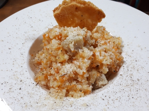 JUGEMテーマ:これ食べた、これ作った 人参と自家製パンチェッタのリゾット♪ ガレットと一緒にイタダキマス 優しい味わいにキュッとパンチェッタがアクセントになっています。 グッジョブ!!