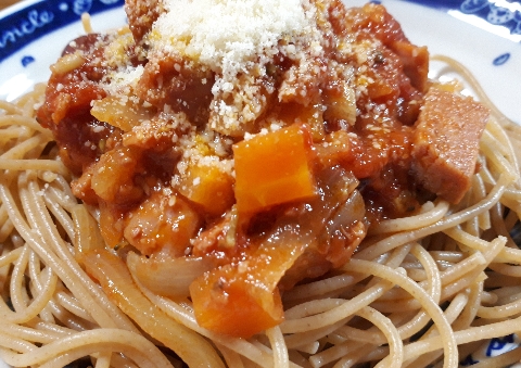 JUGEMテーマ:これ食べた、これ作った 今日は、缶入りソーセージ”SPAM”を使ったボロネーゼを全粒粉パスタにかけてイタダキマース。 素材の味がお互いを引き立てて、とても美味しいソースです。 レシピはこちら
