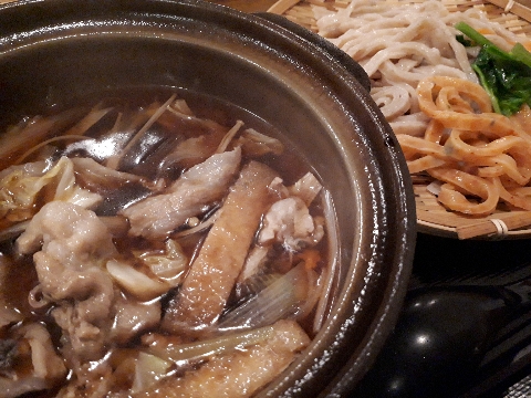 JUGEMテーマ:これ食べた、これ作った 本日は、”長嶋屋”の武蔵野うどん。肉汁で頂きます。 キャベツや人参など具沢山が鰹やコンブの味わい深い出汁を引き立てます。 コシがあって全粒粉の香り豊かな麺で、2つの味が楽しめます。 日替わりで違う麺の味・・・今日は唐辛子が練り込んであってピリと辛く面白い。 サイコロを振ってぞろ目が出たので、天ぷらサービス♪サクサク美味しい。 今度来たら、どんな味の麺が出るか楽しみです。