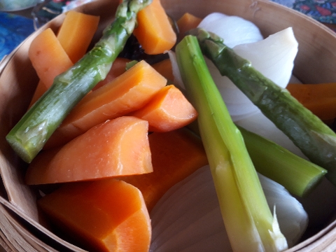 JUGEMテーマ:これ食べた、これ作った 地物野菜を母に持って行ったら、蒸し器を使ってパッと一品出来上がり。 胡麻ダレでホクホク頂きました。