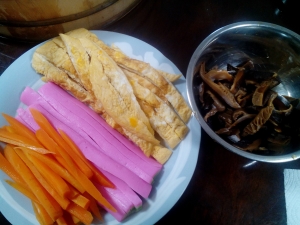 昨日、巻きずしを作りました。 具は、人参、かまぼこ、卵焼き、煮た干し椎茸、煮た穴子、胡瓜。 穴子は値段が高いので、1パックで足りない分はちくわを足しました。 「節分に恵方巻をかぶりつく」のは、関西の風習なんですってね。以前、東京住んでた時に知りました。 具の数は、「七福」にかけて七種類がスタンダードらしいけど、母は関西出身じゃないので、うちはこれがデフォルトです。 2家族分+おすそ分けで5.5合のコメを炊きました。 巻きずし約10本分です。 ...