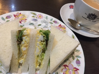 平日に休みが取れたらよく行くお店は ロンドンティールーム堂島本店です。 モーニングは数種類あって、今回は 390円のサンドセット。 薄めのパンにつぶしたゆで卵とレタス。 紅茶は選べて、ホットのロイヤルミルクティーにしました。 このお店のロイヤルミルクティーは ホットもアイスもどちらも大好き。 ジュンク堂大阪本店のすぐ向かいなので 本を買ってから寄るのが定番コース。 地下から行く場合はドーチカの 「文字の店」の看板横階段...