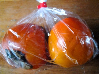 JUGEMテーマ:これ食べた、これ作った そう、渋柿を買いました。 渋抜きした、甘いの。 栗とマスカット買った野菜屋さんで。 まさか、こんなところで出合えるなんて、思わなかった〜! しかも、安売りしてあったの…! さっそく熟したものを食べましたが、たしかに甘かった。 これは、数年前に、田舎で知った食べかた。 ほんとうに、甘くって、びっくりした。 渋柿を、そのまま置...