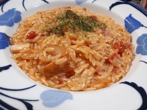 JUGEMテーマ:これ食べた、これ作った 今日は、リゾーニのチーズリゾット風。 作り方はこちら パッと見はお米!でも確かにパスタです。美味しく頂きました♪