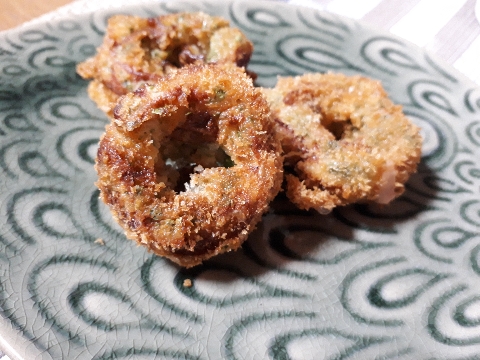 JUGEMテーマ:これ食べた、これ作った イカリングのようですが、実はちくわです。 棒状のちくわを短いパスタで繋いで輪にするそうです。 可愛いサイズで食べやすい。今日もナイスな小人さんの料理でした〜