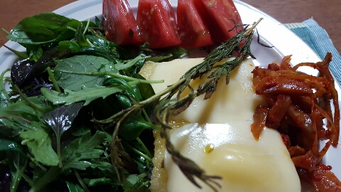 JUGEMテーマ:これ食べた、これ作った 今日は余り物活用術・・・ポレンタに搾菜にサラダという味のオリンピック。 良質のオリーブオイルが素材の香りを引き立ててくれます。 この頃お魚が続いたせいか、トマトが鰹に見える・・・
