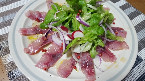 JUGEMテーマ:これ食べた、これ作った いさきのカルパッチョ このさっぱり感は、隠し味のナンプラーとハチミツのお陰ですね? 入梅鰯のマリネ この鰯は抜群に美味しい 小人の腕が活きる新鮮な素材であります。 今日は、白ワインでキマリ!