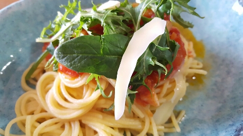 JUGEMテーマ:これ食べた、これ作った グルテンフリーパスタにトマトソースをたっぷりかけて、ゴーダチーズを削ってトッピング 彩りも栄養のバランスも ササッと作る小人、手際がよくなりました。