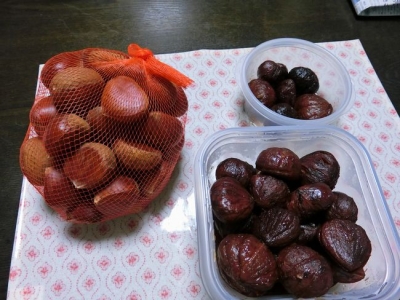 JUGEMテーマ:これ食べた、これ作った 今年3回目の挑戦 栗の鬼皮がうまくむけなくて 煮ているうちに渋皮が破れ 中身がポロポロと・・・ お砂糖を入れる前に思い切って中身だけを取り出し つぶしてから お砂糖を入れて煮直しました ブランディーを入れて茶巾しぼりにしてみました 「おいも」?ではありません でも食べてみないと分からないかも が来て「うち みんな甘いの好きだから もらっていくよ」 「どうぞ〜〜〜」 お砂糖の量を...