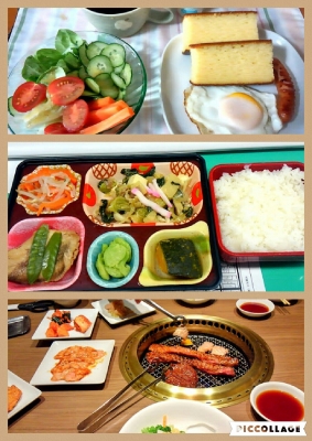 JUGEMテーマ:これ食べた、これ作った 昨日飛ばしてしまったので今日二日分です。 22日 朝はカステラ2切れとサラダ、ベーコンエッグ・ラブレ。 お昼は食堂のヘルシー弁当、594キロカロリー。 八宝菜、カボチャの煮付け、蓮根の酢の物、そら豆、赤魚の炊いたのん、ご飯。 夜はワンカルビでお肉食べ放題。 手切りカルビは2本食べたと思う(>_<)もちろん他のお肉も食べたし、石焼きビビンバ、とうもろこしのチゲ、冷やし坦々麺も食べた、飲み放題で梅酒やいも焼酎も飲みました。 当分お肉はいらない…と思う...
