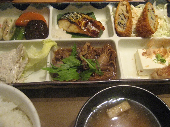 彩定食 価格 686円(税込740円) 色とりどりの6種類のおかずに彩られた、味も見た目もバラエティに富んだ人気メニューです。※季節によってお料理が変わります。※定食のご飯はお替り自由です。ホームページからメニューをコピーしたら宣伝みたいです。