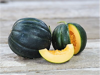 JUGEMテーマ:フルーツ 購入リンク: http://www.marcheaozora.com/?pid=110283596 *** 日本初上陸の品種です *** 見た目はカボチャですが、フランス原産の古代品種の代表格で、カンタロープの仲間です。 表面はツルツルとしてリブがあり、完熟すると果肉はオレンジ色になり、芳醇な香りが特徴です。 実は1〜1.5kgの重さになります。 和名: ブラックロックメロン 英名: Balck Rock Melon、Noir des Carmes Melon 学名: Cucumis melo 原産地: ナント・フ...