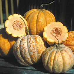 JUGEMテーマ:フルーツ 購入リンク: http://www.marcheaozora.com/?pid=104348006 フランス原産の古代メロン(カンタロープ)で、フランスのマルシェで稀に見かけるまで減ってきた激レア品種です。 「Delice de la table」は「テーブルの喜び」という意味です。 カボチャのような容姿ですが、外見からは想像がつかない程の芳醇な香りで、メロンマニアを虜にする一品です。 フランスの高級レストランではデザートメロンとして知られています。 和名: ドリス・ド・ラ・タブ...