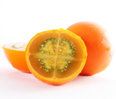 JUGEMテーマ:フルーツ リンク: http://www.marcheaozora.com/?pid=99912258 鮮やかな黄緑色の果肉を持つルロ(ナランジラ)は、爽やかな酸味のある、エキゾチックで気品高いフルーツです。 キウイに近い風味で、ビタミンCとイノシトールを豊富に含みます。 英名: Lulo 和名: ルロ、ナランジラ 学名: Solanum quitoensis 原産地: リオ・ブラジル 形態: ナス科、多年草 自家結実性: 1本で結実します 収穫日数: 6〜12ヶ月 樹高: 1〜2m 葉張り: 50〜90cm 発芽率: 85% ベランダ栽培: 剪...