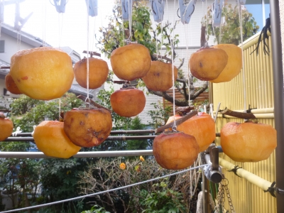 JUGEMテーマ:フルーツ JUGEMテーマ:深まる秋 熟すれば 先輩後輩 違いなし 二日間の雨降りで葉っぱが落ち、まだ柿が5個残っているのが見えて再び収穫しました。 先に干した柿、雨中は室内で送風機と乾燥機をかけて順調に干し柿に変身中です。 そこに新入りの柿を吊るしたら、たった5日違いなのに随分色も大きさも違っています。 でも干し上がる頃〜一ヶ月位先〜にはきっと違いが無くなって居る筈です。 来週は寒波到来!の予報。 インフルエンザ流行の兆しもニュースになっています。 皆様、お身体大切...