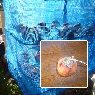 JUGEMテーマ:鳥が好き! JUGEMテーマ:深まる秋 お鳥さま 口を挟むな! 他人のもの 干し柿が大分出来て来ました。 干し上がるのを待ちきれないのは、人間よりも鳥の様で 一つだけ突かれた痕がある柿を発見!ショックです。 お鳥さま用の柿がちゃんと枝に挿してあるのに…(涙) 慌てて干していた柿を家の中に取り込み、干物用のネットを買いに走り、 柿を並べて、再度軒下に吊るしました。 主人はこのネットで切り干し大根なども干せると喜んでいますが 何でも直接日の光に当てた方が、恵...