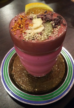 日中の気温も上がってきたので、久しぶりに ローフードのお店に行ってきました。 オレンジ&ビーツのスムージー♪ トッピングはカカオニブなど、スーパーフードが! このピンク色は、ビーツの色。 ビーツはカブのような形をした赤紫色の野菜です。 ボルシチに欠かせない食材で有名。 「食べる血液」と言われるほど栄養価が高く、 免疫力をUP、血行促進、貧血予防、整腸作用、 便秘解消、肝機能の向上、腸内環境を整えるなど。 ほ〜! すごい...